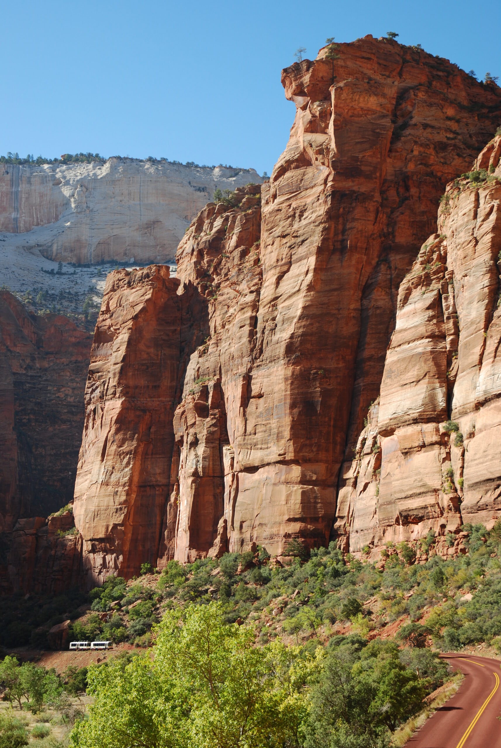 Trip Itinerary • 7 min read Explore the Heart of Zion National Park on the Zion Canyon Scenic Drive Zion Canyon Scenic Drive reveals Zion’s most iconic views—by shuttle or car—through a 7.7-mile route that changes with every season. Greater Zion April 3, 2026 The Zion Canyon Scenic Drive follows the Virgin River from the visitor center deep into the canyon, ending at the quiet stone amphitheater known as Temple of Sinawava. The drive itself can take less than half an hour without stops, but most visitors spend 2 to 4 hours exploring the route, hopping off at viewpoints, short trails, and scenic pullouts along the way. There’s one key detail that surprises visitors: you can’t always drive a private vehicle. During busier months, the park shuttle carries you along the drive. In quieter seasons, personal vehicles are allowed. How the Shuttle Works During most of the year, private vehicles are not allowed on the drive. You’ll need to park at the Zion Canyon Visitor Center, in the town of Springdale, or at the Zion Corridor Park & Ride. Then board the free park shuttle at the visitor center to access the canyon. The shuttle is a hop-on, hop-off system that runs through Zion Canyon. The ride takes approximately one hour if you don’t get off at any stops. If you do decide to exit, you can explore multiple trailheads and viewpoints at your own pace. Just remember, you don’t want to miss the final shuttle back. “You should not wait for the last shuttle of the day. If the last shuttle is full, or if you miss the last shuttle, you may have to walk nine miles back to the Zion Canyon Visitor Center” (National Park Service). Check the shuttle schedule before coming to the park. What You’ll See Along the Way As the road winds deeper into the canyon, it connects you to some of the park’s most iconic places. A few of the stops to look forward to include: Court of the Patriarchs: short walk to a viewpoint of three massive peaks Zion Lodge: the central hub for food, restrooms, and access to the Emerald Pools Trail The Grotto for access to Angels Landing (Permit required for the chained portion.) Temple of Sinawava is the final stop and the start of the Riverside Walk to The Narrows Even if you never leave the shuttle or car, the drive reveals the scale and character of Zion National Park in a way everyone can appreciate. The same road. Four different experiences. Yes, this road delivers some of Zion Canyon’s most recognizable views, but what makes it remarkable is how it changes with the calendar. Spring (March–May) Mild temps (60s–70s), flowing water, and wildflowers returning to the canyon floor. Tips: One of the comfortable seasons to explore. Waterfalls and hanging gardens are often active, especially during the snow melt Shuttle system is in operation (no private vehicles in the canyon). Summer (June–September) Hot, bright, and full of long days. Best hiking windows: early morning or evening. Tips: Temps can reach near 100°F. Carry sun protection and plenty of water. Short afternoon thunderstorms are possible Shuttle runs frequently, but can have wait times Fall (October–November) Golden cottonwoods, cooler air, and some of the best hiking conditions of the year. Tips: Shuttle typically runs through late November (Thanksgiving) Fall color peaks late October – early November (varies yearly) Crowds slightly taper after Labor Day Winter (December–February) Quiet, reflective, and often lightly dusted with snow. Trails remain open unless conditions are icy or hazardous.** Tips: Private vehicles are often allowed in the canyon Shuttle runs during the holiday period (late December to early January) Always check the park’s official conditions page at nps.gov/zion. **The Riverside Walk, Pa’rus Trail, and Lower Emerald Pool Trail are all solid choices for winter hiking. They’re at a lower elevation, get more sun, and are less technical. Practical Tips Arrive Early Parking near the Visitor Center often fills by 8–9 a.m. Many people opt to park in Springdale and take the town shuttle. Pass Options To enter the park you will need a pass. Your options include: $35 Standard Pass This pass covers a single private vehicle for entry to national parks for 7 days only. The passengers in the car are all covered with this pass. If you drive a motorcycle into the park, it is a $30 fee for a standard pass. $80 Annual Pass The America the Beautiful pass covers all national parks and a variety of federal recreation lands across the country for one year for US residents. All passengers in the car are covered for entry. International travelers must purchase a Non-Resident Annual Pass. Take Your Time Pullouts and viewpoints are part of the experience, not detours. Watch for Wildlife Mule deer are common near the road; bighorn sheep sometimes appear on canyon walls; and California Condors soar over cliffs. Check Conditions Roads and trails can shift with the weather. Always check nps.gov/zion and Zion Area Roads to Recreation for current conditions before visiting. One Road: A Different Experience Every Season. The Zion Canyon Scenic Drive delivers something rare: a landscape that never feels the same twice. Whenever you arrive, it’s the perfect time to experience it. But don’t be surprised if, on the way out, you’re already planning your return. A Day in Zion Canyon If you’re visiting for the first time, this simple route gives you a full canyon experience: Start at the Visitor Center → board the shuttle Stop at the Court of the Patriarchs and walk the paved trail to the viewpoint. (It’s the shortest trail in the park.) Continue to Zion Lodge → Grab ice cream, shop, or walk the Emerald Pools Trail. Continue to the Temple of Sinawava → walk the paved Riverside Walk to The Narrows entrance. On the return trip, stop at Big Bend for exceptional panoramic views of Angels Landing, the Great White Throne, and Cable Mountain. Optional: Start or end the day by viewing exhibi